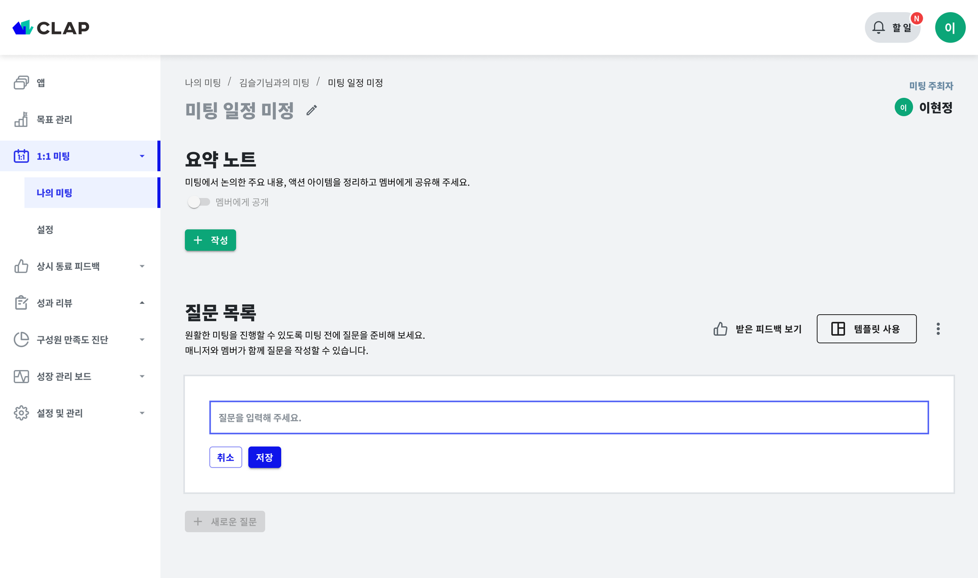 📌 1on1 미팅 시간의 밀도를 높이세요! - 미팅 노트 기능 가이드