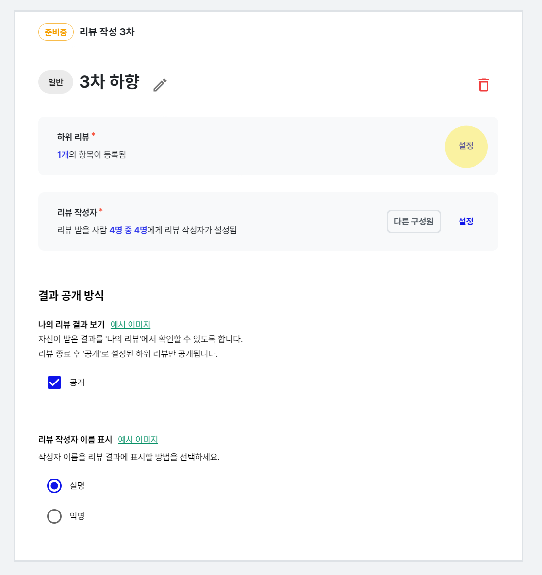 3-1) 평가 운영 중, 진행 예정인 단계의 평가 설정이 어떻게 되어있는지 확인할 수 있어요