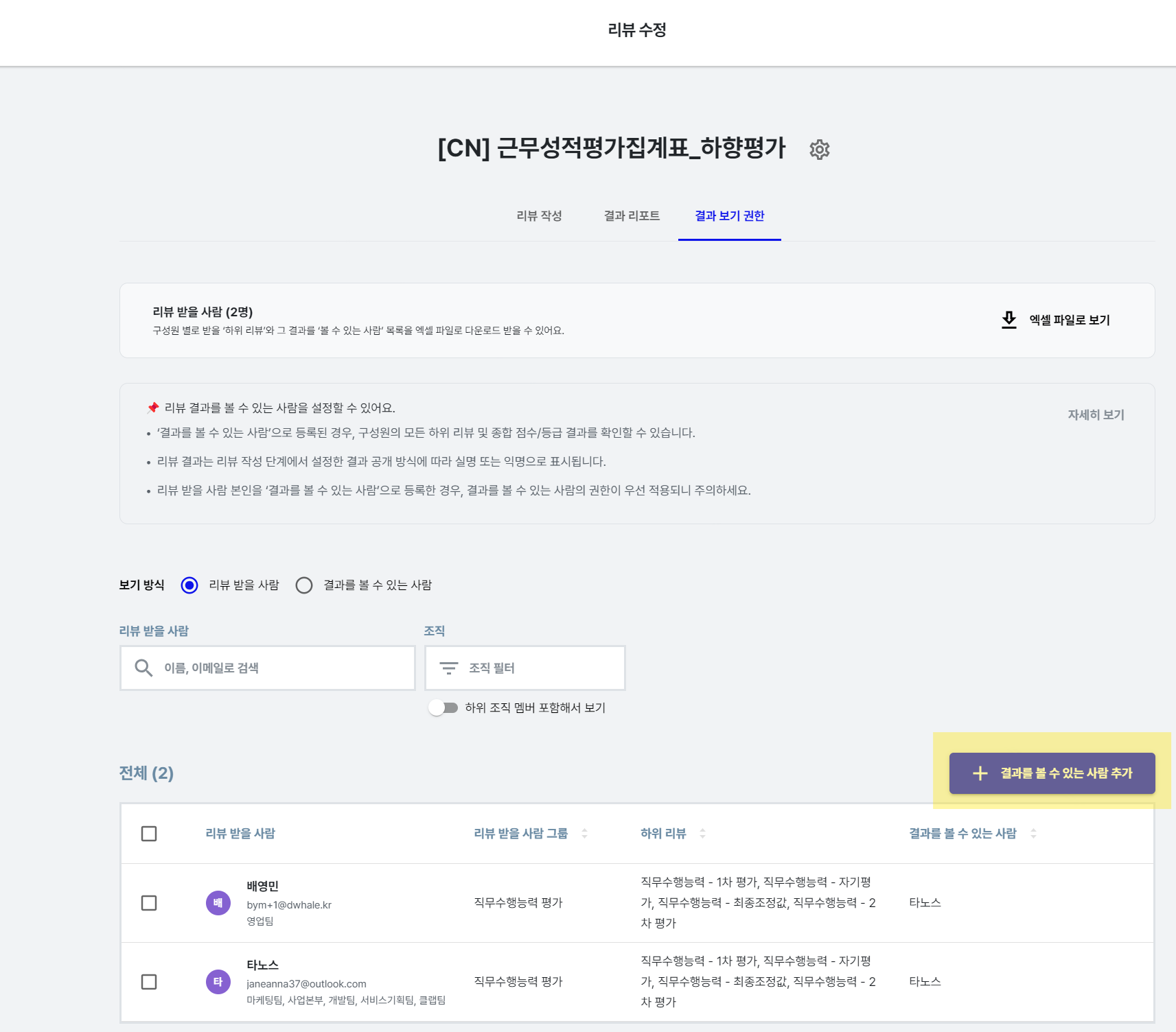 3-5) 평가 결과 보기 권한을 수정해 보세요