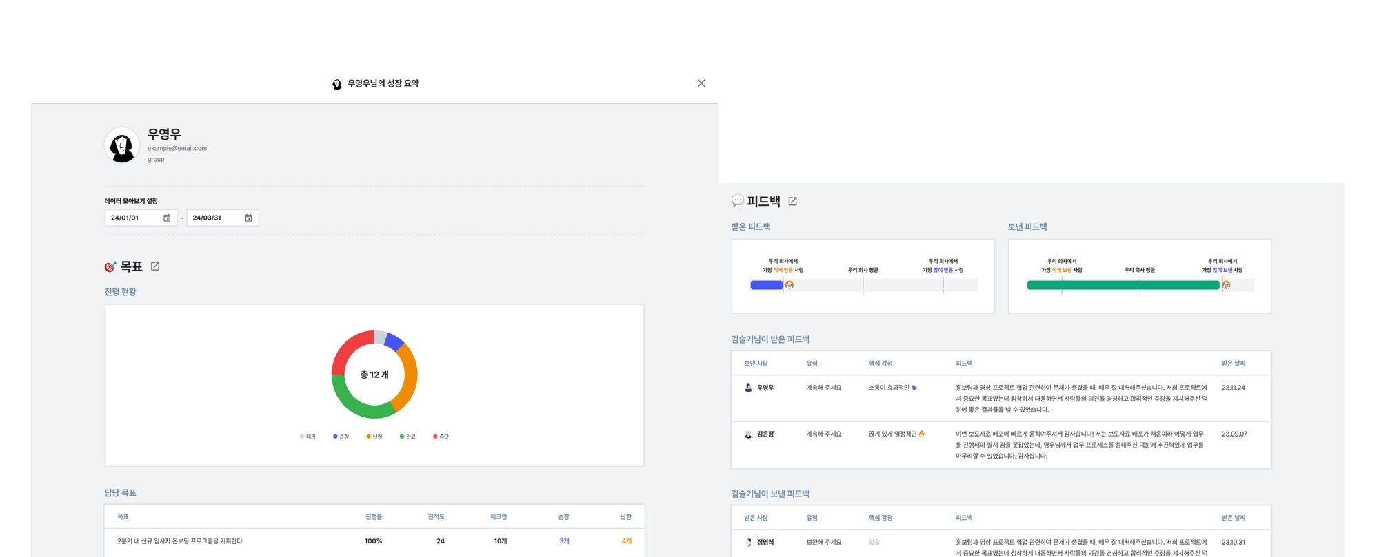 4. 보다 객관적인 평가 방법을 찾고 계신가요? 피평가자의 성장 리포트를 참고하며 평가를 진행해 보세요!