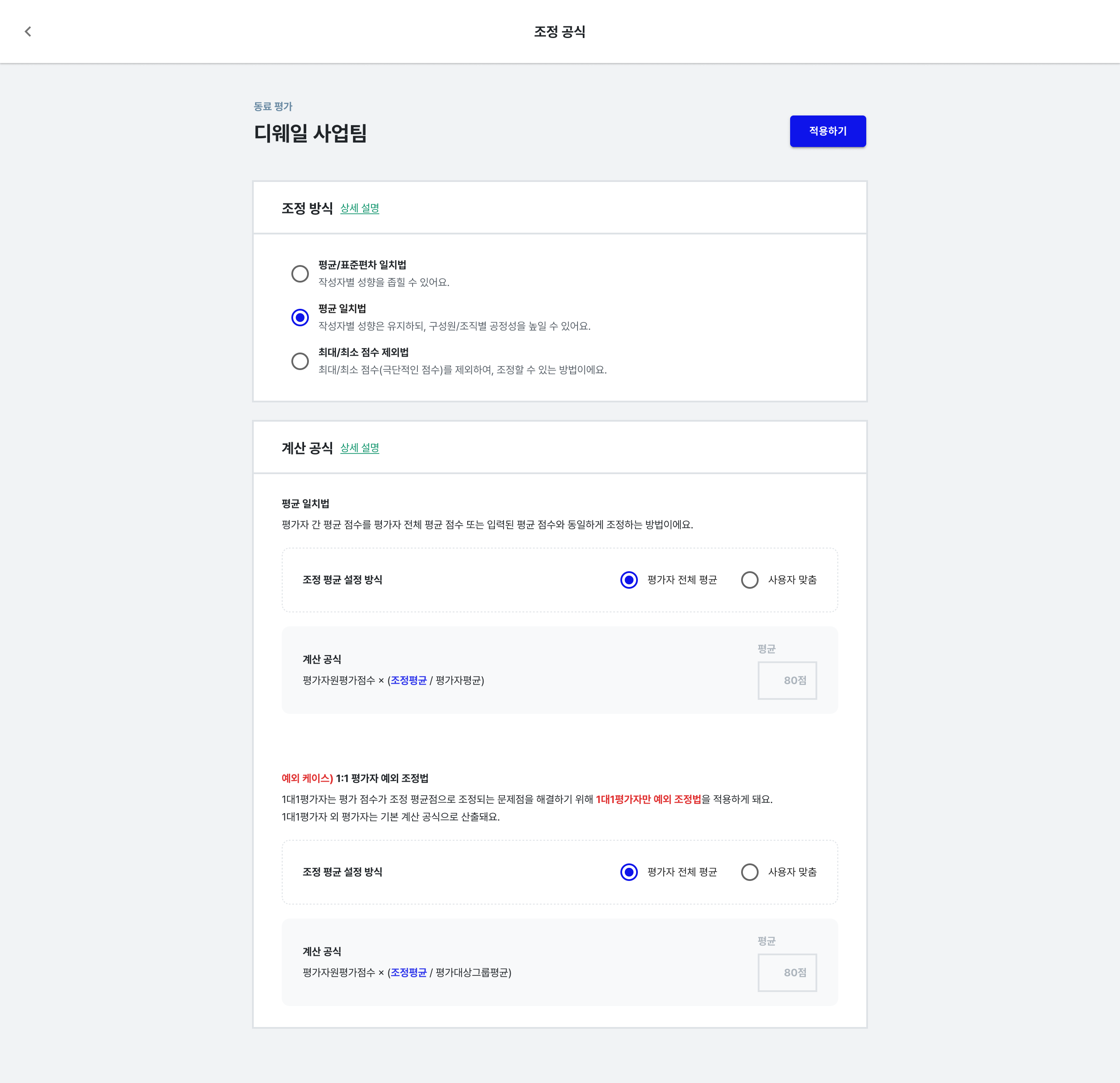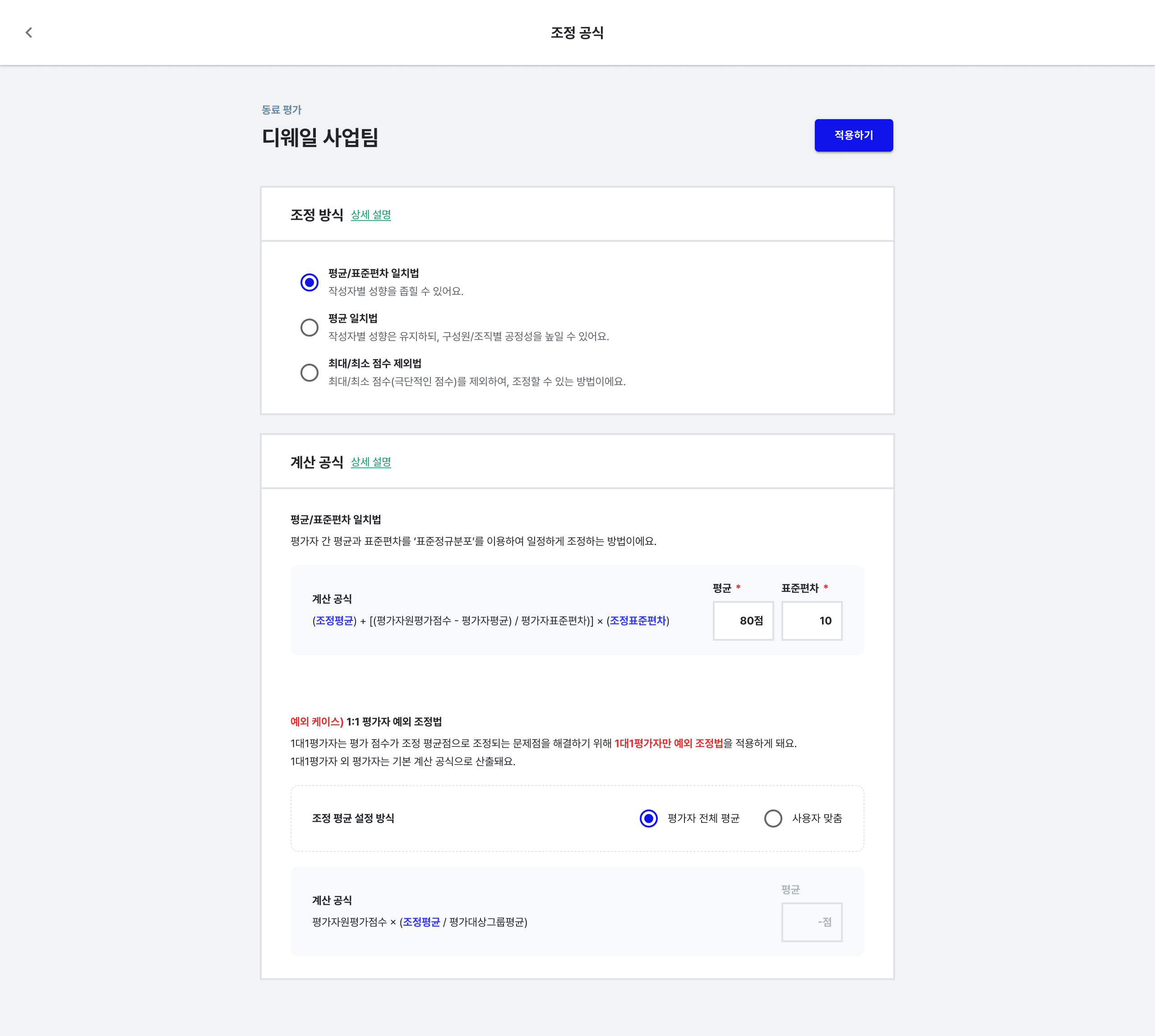 • 단순히 평균으로 점수를 조정하기 때문에, 성과의 질적 차이를 충분히 반영하지 못할 수 있습니다.