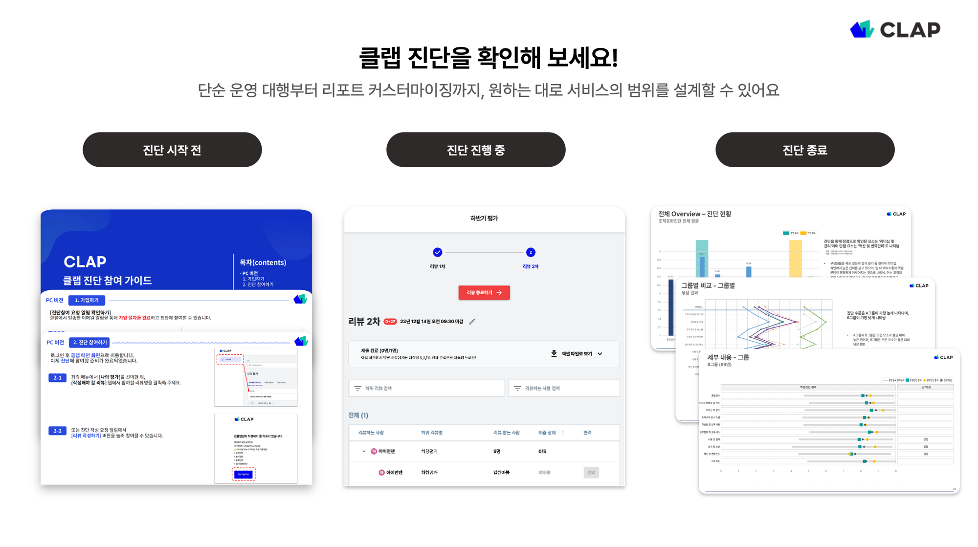 [ AI 기반 커스터마이징 성과관리 솔루션 클랩CLAP, 진단 플랜 확인하기]