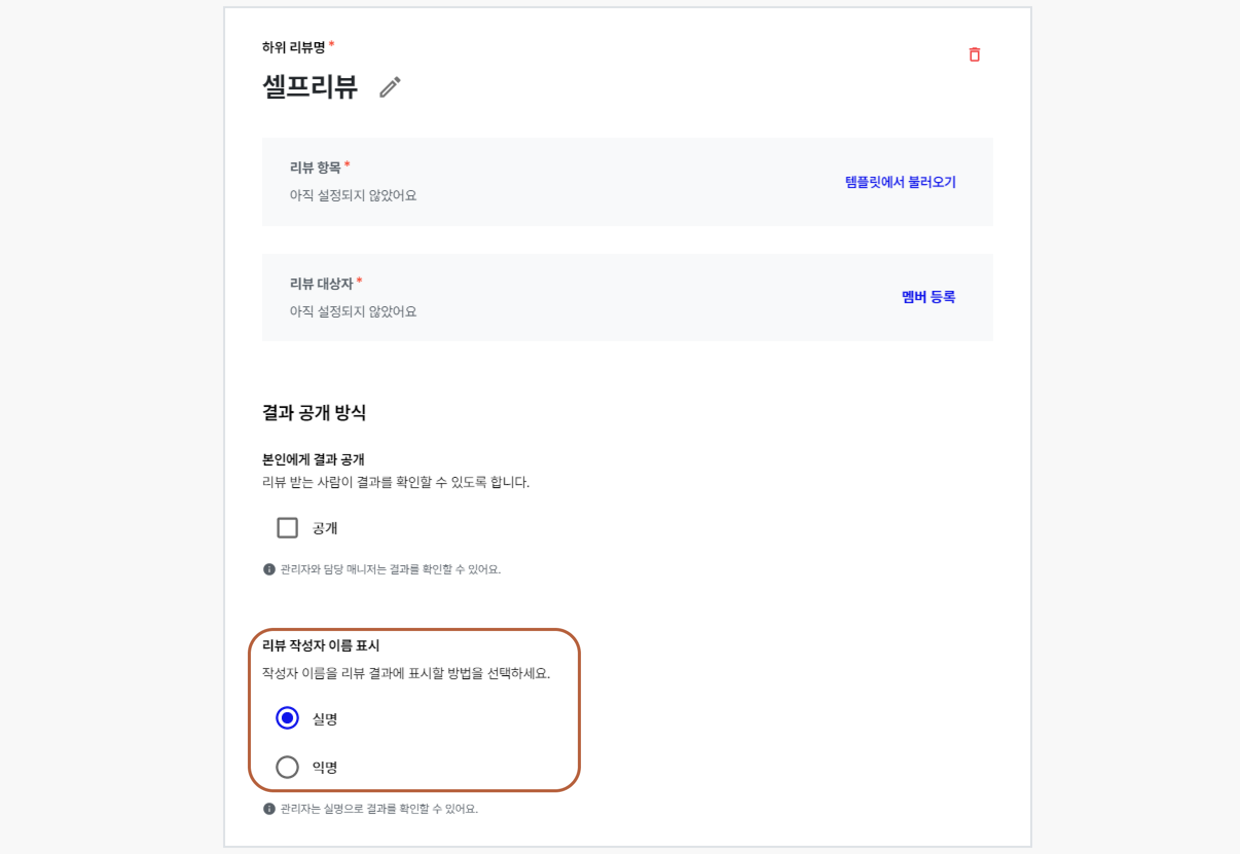 본인에게 리뷰 결과 공개 여부 선택