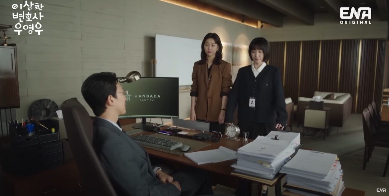 “우영우 변호사, 이거 딱 보면 모르겠어요? 이 사건 처음부터 검찰에서 피고인한테 집행유예 주려고 마음먹고 있는 사건이에요. 피고인이 반성하고 있는 모습 보여주고, 피고인이 피해자 처벌 원치 않는 거 보여주면 충분해요. 그러니까 변호사가 피고인 옆에 가만히 앉아있기만 해도 집행유예가 나오는 사건이라고. 유무죄를 다퉈야하는 사건이면 내가 이걸 우 변한테 맡겼을까? 오늘 첫 출근하는 신입한테?”