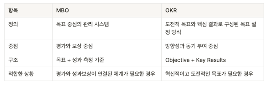 ✔️ MBO / KPI / OKR 차이점을 확인해 보세요