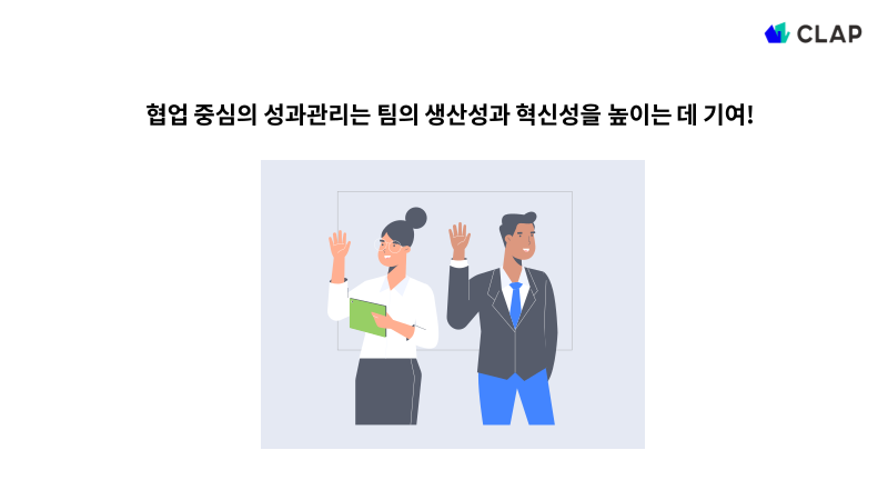 성과관리는 팀원 개개인의 목표 달성을 넘어 조직과 팀의 성과를 높이는 중요한 도구입니다. 당장 도입하는 것이 쉽지는 않겠지만 협업을 기반으로 한 성과관리 문화를 조직에 적용한다면 이를 통해 팀원들이 서로를 돕고 함께 성장하는 조직을 만들 수 있을 것입니다.