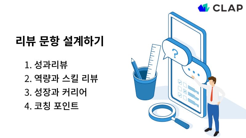 리뷰 문항은 성과와 성장을 종합적으로 리뷰할 수 있도록 밸런스 있게 설계되는 것이 좋은데요.