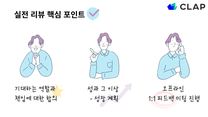 리뷰가 가지는 의미와 중요성을 알아봤는데요. 리뷰는 전사 차원에서 많은 시간과 비용을 투자하는 과정입니다. 리뷰를 설계하고 운영하는 HR은 물론, 리뷰를 진행하고 그 결과에 대해 피드백을 진행하는 멤버와 매니저 입장에서도 많은 시간과 에너지를 사용하게 되는 일인데요, 그만큼 리뷰의 효과가 있어야 한다는 의미가 되겠죠. 리뷰 단계에서 리더가 어떤 점을 체크해야 하는지 생각해 보겠습니다.